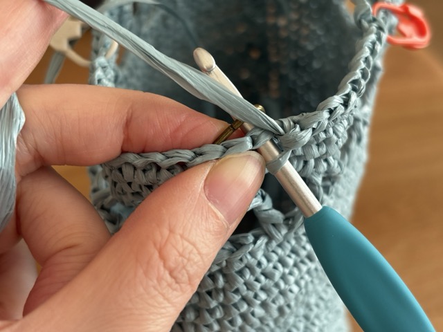 ”輪を引き抜く”引き抜き編みを繰り返し、44段目まで編んでいきます。